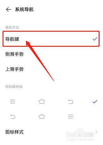 进入页面后,点击【导航键】,手机底部就出现了三个按键,如图所示。
