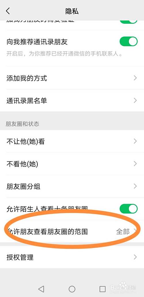 下滑找到“允许朋友查看朋友圈的范围”,点击进入。