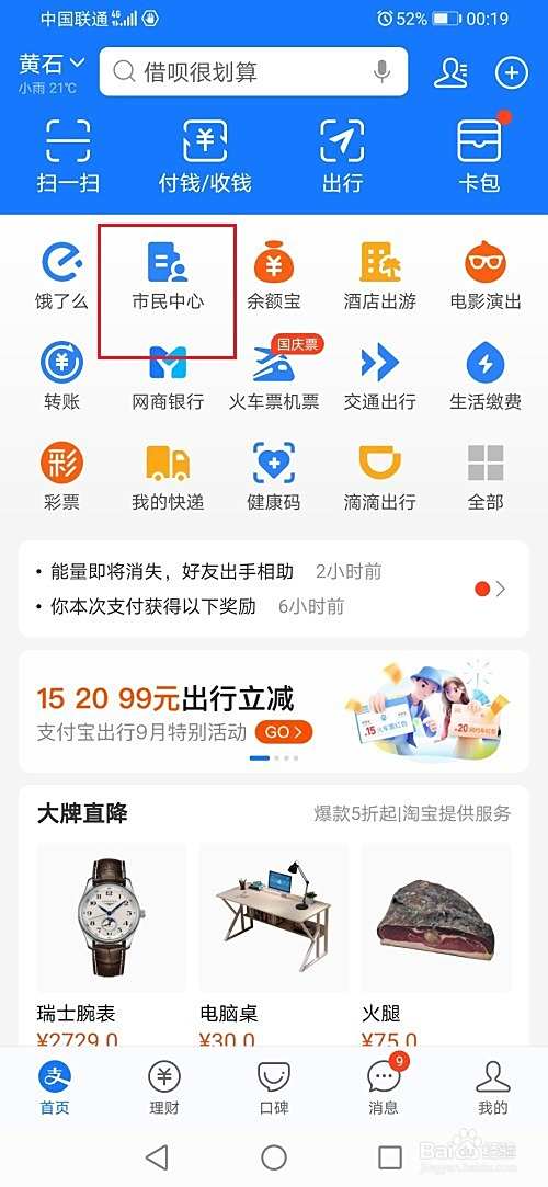 第一步打开支付宝,在首页中点击市民中心