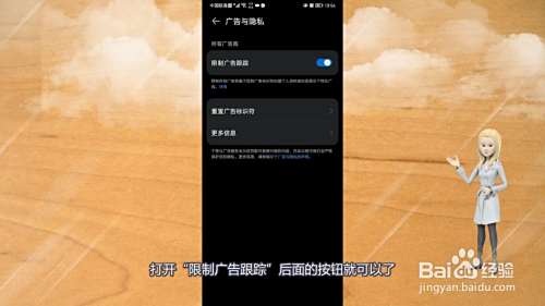 在广告与隐私界面中,打开“限制广告跟踪”后面的按钮就可以了。