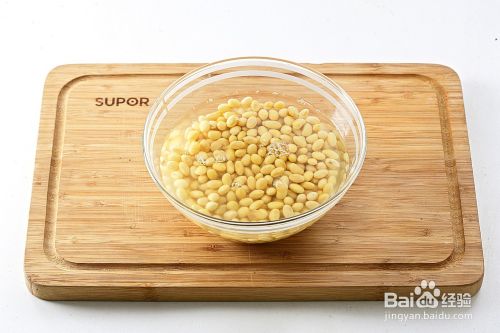 水发黄豆放入豆浆机,加入 1000ml 的清水,制成豆浆。