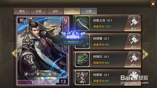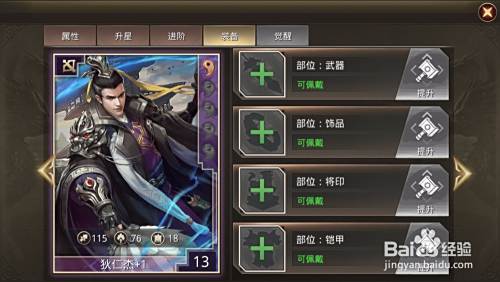 如果武将还没配戴装备的话,点击装备位就可以佩戴装备。