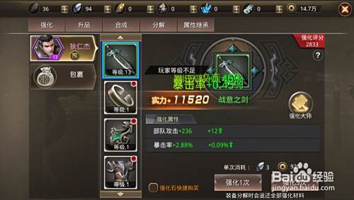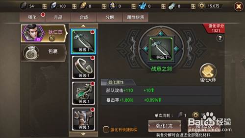 王者纷争是一款策略游戏,想提高自己的战斗力,只通过升星、升级武将、升阶和配搭装备是不够的,将装备等级强化起来才可以获得大量战斗力。