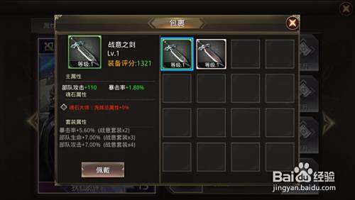 然后在仓库里面选择最高品质的装备进行佩戴。