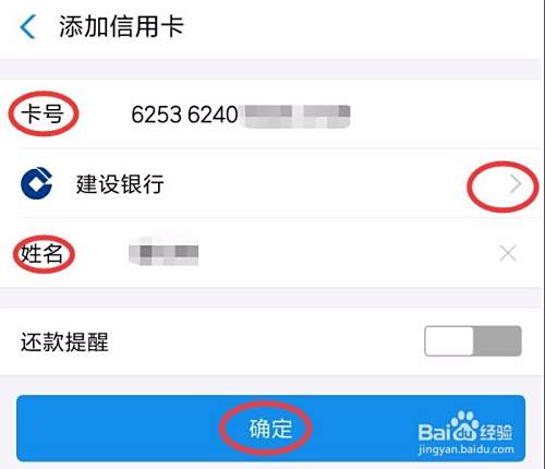 打开“+”后,在弹出页面添加需还款的信用卡信息,点击确认。