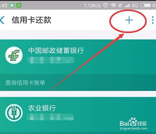 打开信用卡还款后,在弹出的页面右上方找到“+”并点击打开。