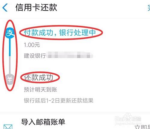 输入密码正确后,就会弹出还款的进度信息,如:付款成功,银行处理中、还款成功,预计明天到账等信息。最后,还款成功后,你会接收到支付宝发出信息,还款后要关注支付宝信息。