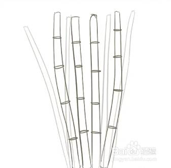 为竹竿画四个长圆柱体。把它们画直或弯曲。