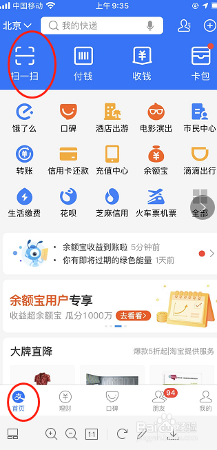 打开支付宝首页,点击扫一扫,直接扫对方的二维码就可以向对方付钱。