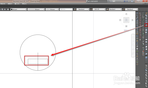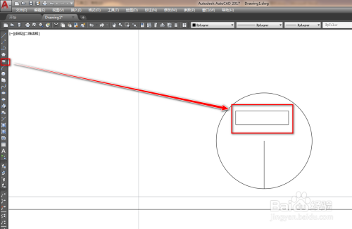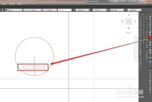 使用矩形工具在圆内绘制一个矩形,如下图。
