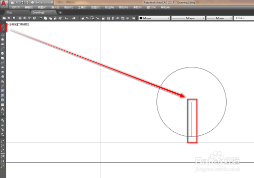 使用直线工具,绘制一条竖线半径,如下图。