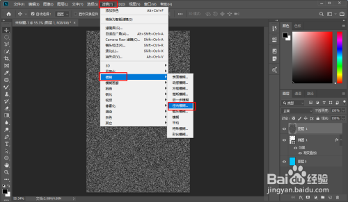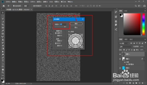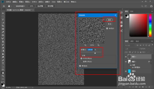 然后执行滤镜→杂色→添加杂色选项,在弹出的对话框中修改下数值单击确定