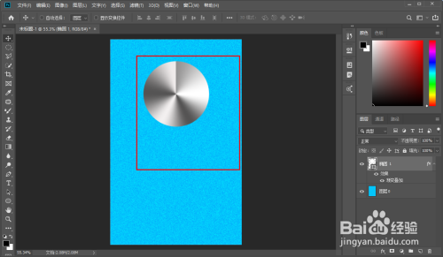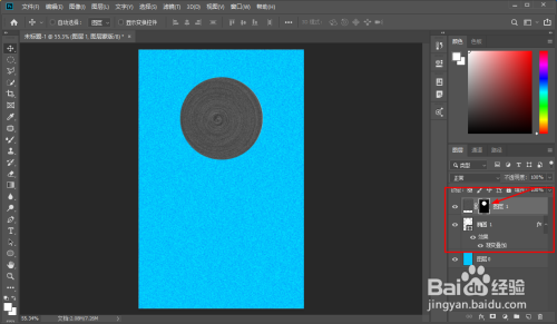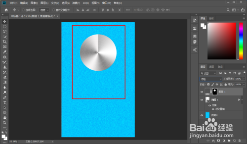 然后按住ctrl单击椭圆图层调出选区给黑色图层创建一个蒙版,最后把模式改为滤色这样金属质感的图形就制作完成了