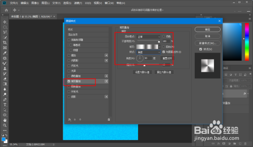 选中渐变叠加给圆形添加一个黑白相间的角度渐变,然后单击确定