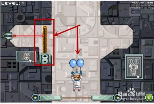 在第一关当中,我们用气球升空了,但是发现了一个障碍,红外线会击破气球,所以我们得把那个开关按一下。