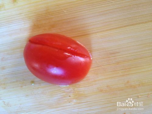 在小番茄的三分之一处切开,作为小金鱼的尾巴