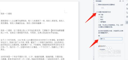 在文档右侧弹出的限制编辑框中,勾选“设置文档保护的方式”,如“只读”;再勾选“组”