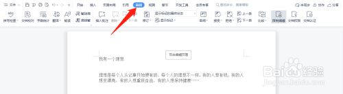 首先打开WPS文档,然后点击文档顶端的“审阅”选项卡