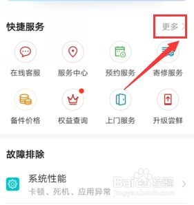 选择下面菜单栏里的服务,选择快捷服务的更多设置