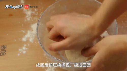 3成团后面粉按压换成揉捏,捏成面团。
