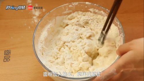 1面粉加入热水,搅拌成絮状。