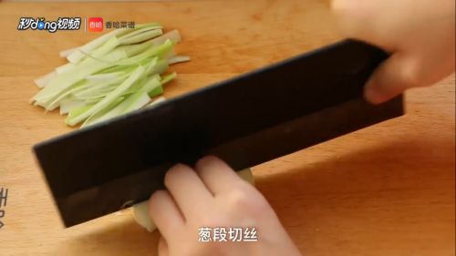 16将葱切成葱丝。