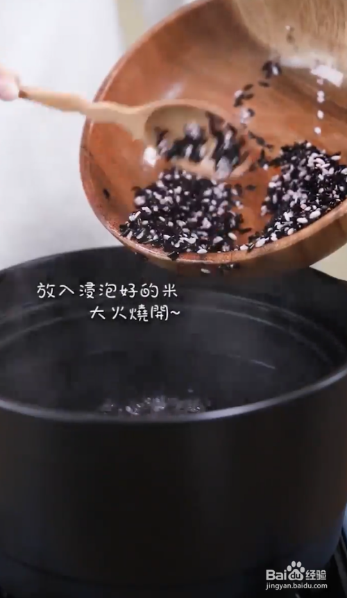 加入1300ml水,大火烧开,加入浸泡好的米,大火烧态沟追开。