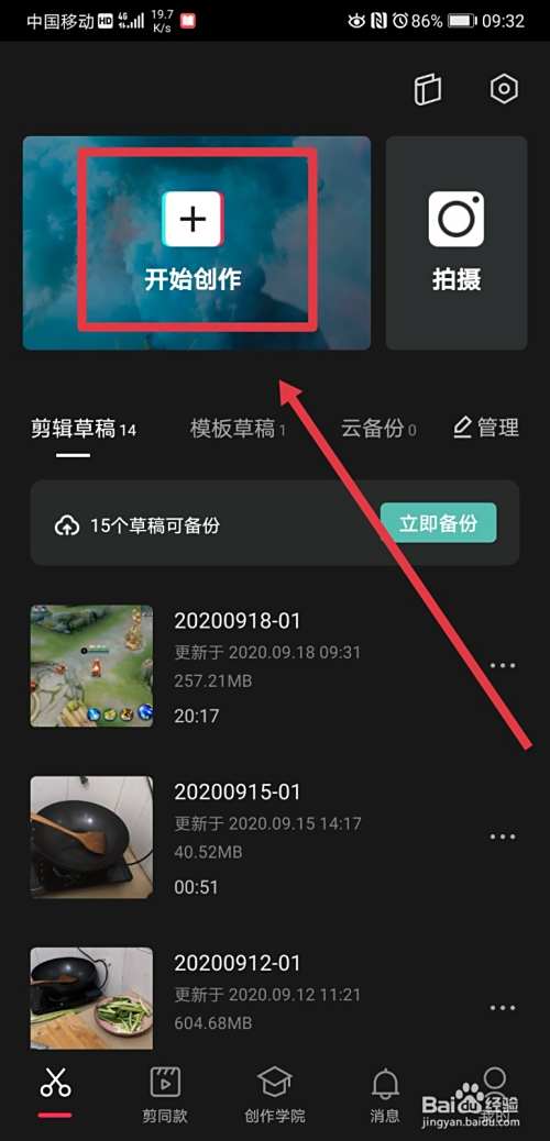 首先,我们打开剪映app,在首页找到开始创作功能,点击进入;