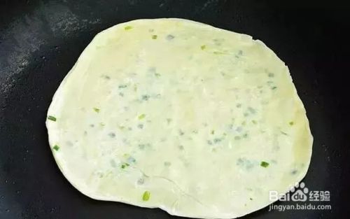 同时用擀面杖正反面擀成圆饼胚,厚度为4毫米左右,不要太薄,否则容易烙干。