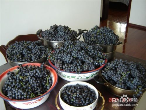 我这里介绍做葡萄酒的全过程,做法十分简单,只要你有耐心。做葡萄酒、欣赏葡萄发酵的过程、喝葡萄酒,都是一种享受。你仔细地阅读我的介绍,认真地观看照片,有兴趣就试着做一次。(按去年的材料价格,每斤葡萄酒成本3元)原料只有两种材料:葡萄,冰糖,再不加任何东西.(山葡萄比家葡萄好,冰糖比白糖好,后两种东西也可以做,但酒的质量差一点,山葡萄做出的是真正的红酒). 葡萄的籽和皮,一定要保留,因为它们里面含有对人体十分有益的单宁和决定葡萄酒颜色的色素.(去皮葡萄做不出红葡萄酒.) 能封口的玻璃、陶瓷容器都可以,但玻璃容器更好一些.用玻璃容器,容易看到里面的变化,可以观察了解酒生成的过程;万一产生局部污染(一般发生在表面), 还可以及时清除。由于发酵膨胀将要产生溢出时,可以弄出来一些。容器口不要太大,考虑封口、防污染。