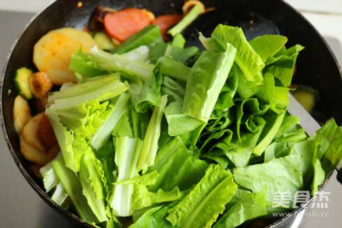 3油麦菜切段,这个算是乱入的,我太喜欢油麦菜的香味的,所以加了两棵。