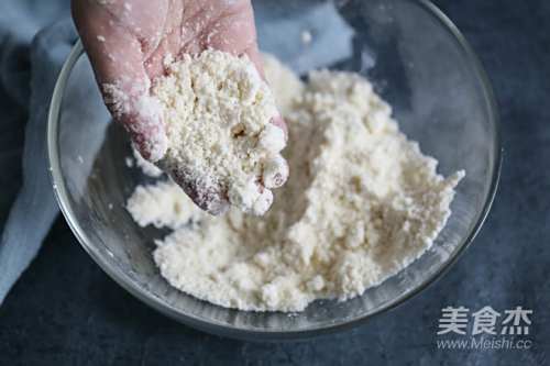 1将黄油、低粉、糖粉混合,用手揉搓,混合成蓬松的状态即可。