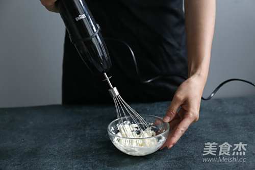 3将奶油奶酪隔水融化成粘稠状,加入酸奶搅拌均匀。