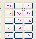 在计算器的左边是主要负责函数计算的,这里有sin、dms、Exp、ln、log等都可以在这个区域找到,同时计算方式有一定要求像是方计算的话要求先按数字后按方计算然后再输入次数。