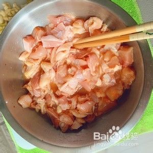 鸡肉先切好加点生抽,淀粉,少许料酒腌制十分钟以上
