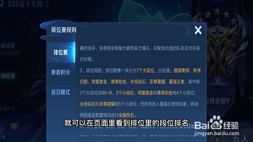 向下找到段位规则选项,就可以在页面里看到排位里的段位排名。