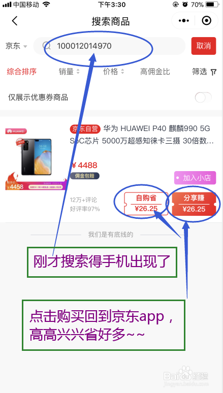 第四步、进入东小店小程序,粘贴商品编号,进行搜索即可