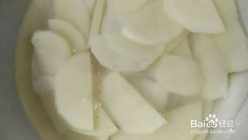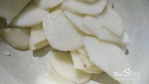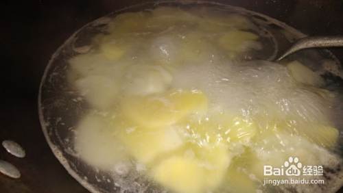 捞出来,再放入沸水中焯一下,至土豆变色即可捞出。