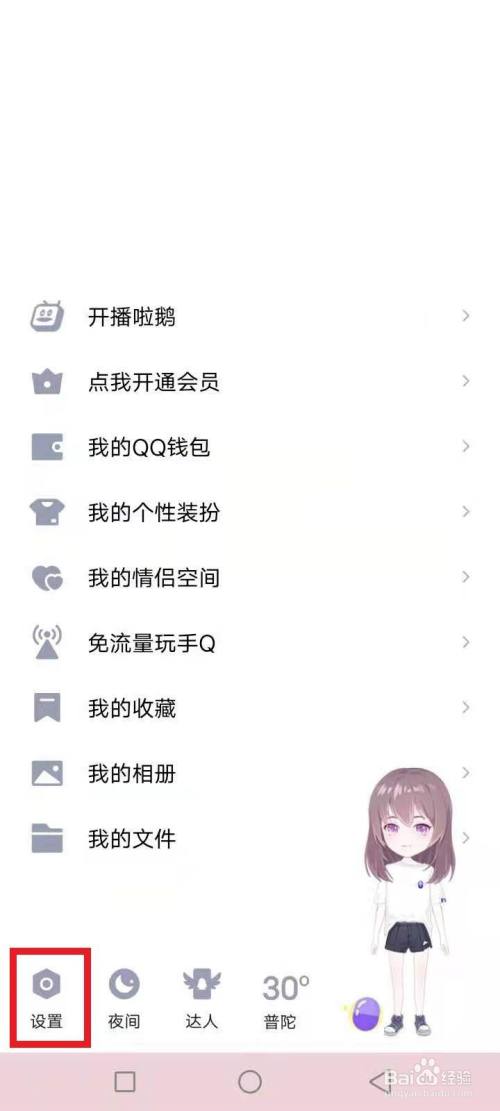 手机打开QQ,点击头像进入个人中心,点击左下角设置。