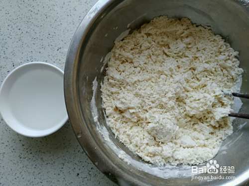 把酵母水全部倒入面粉中,先用筷子搅拌均匀成棉絮状,另外再准备一碗温水。