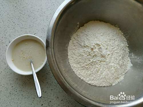 准备好面粉,称取3-4克酵母放入100克温水中(用手指试试感觉温热即可)搅拌至酵母粉大致化开。