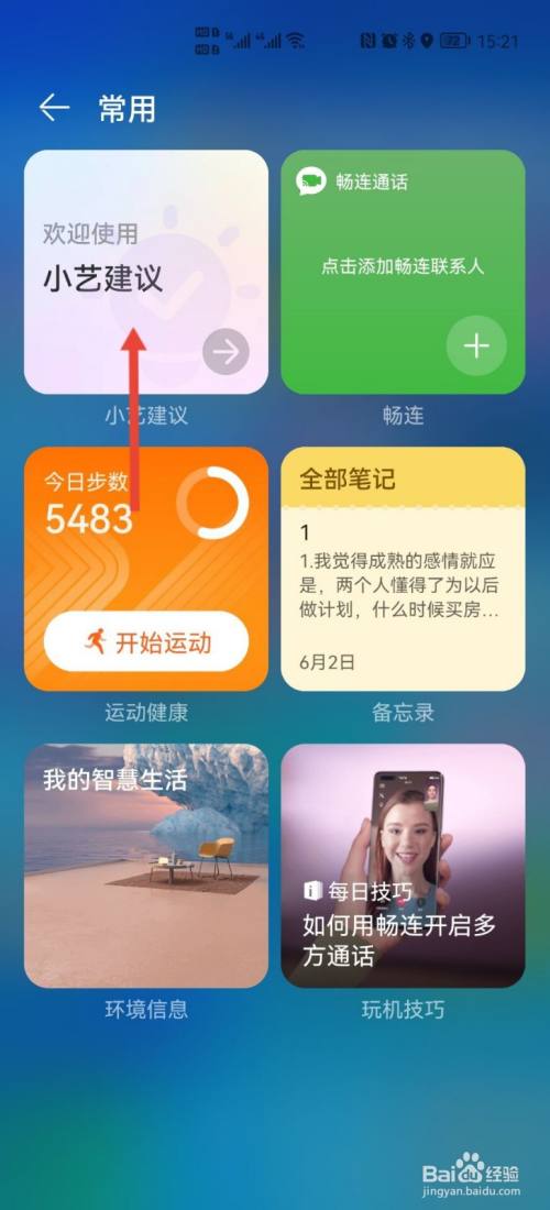 第三步,点击常用,再点击小艺建议的箭头即可恢复