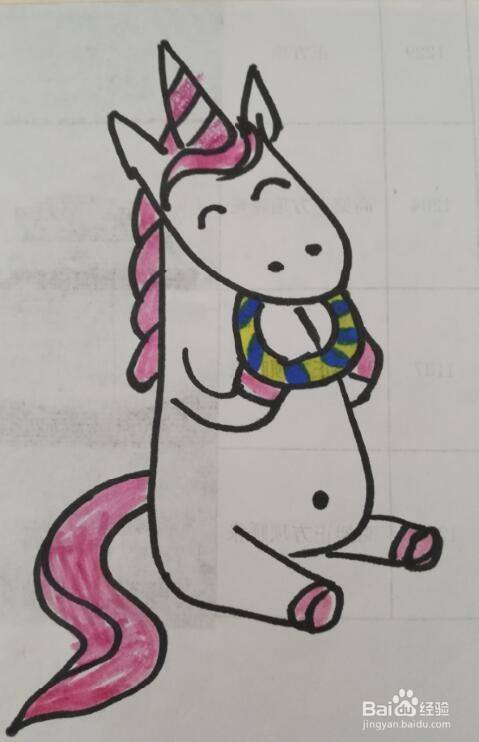 最后一步,如图所示,给独角兽涂上颜色,完成。