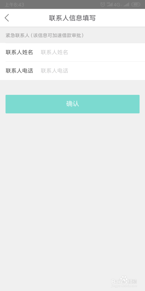 然后填入紧急联系人的联系方式,点击“确认”即可完成借钱。