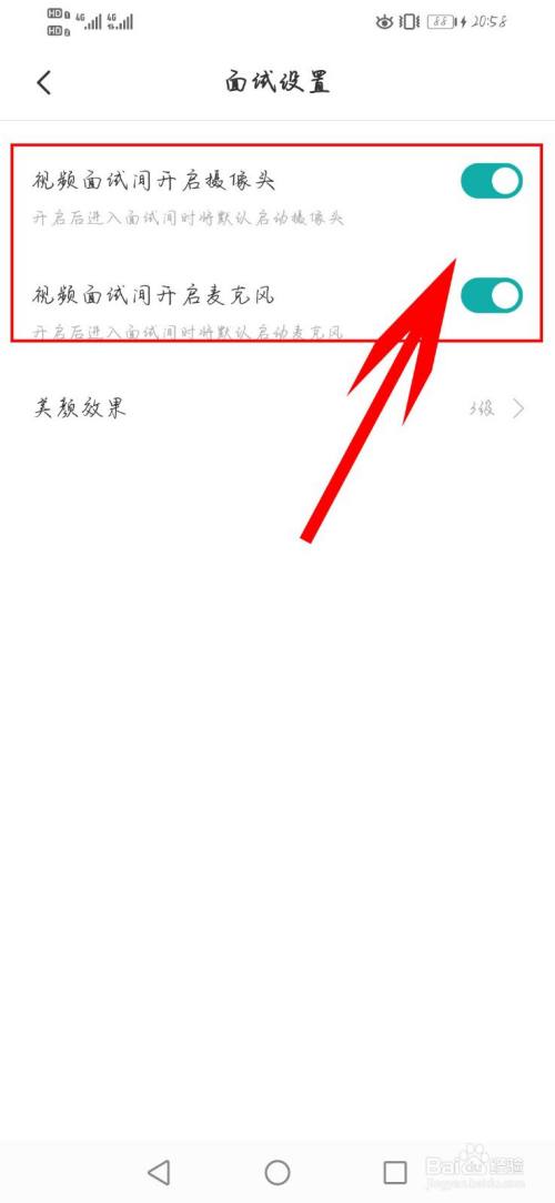 最后将”视频面试时开启摄像头与麦克风“功能勾选即可完成开启操作