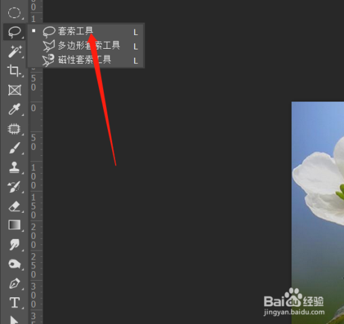选择左侧工具栏的套索工具,选中需要变换颜色的区域。