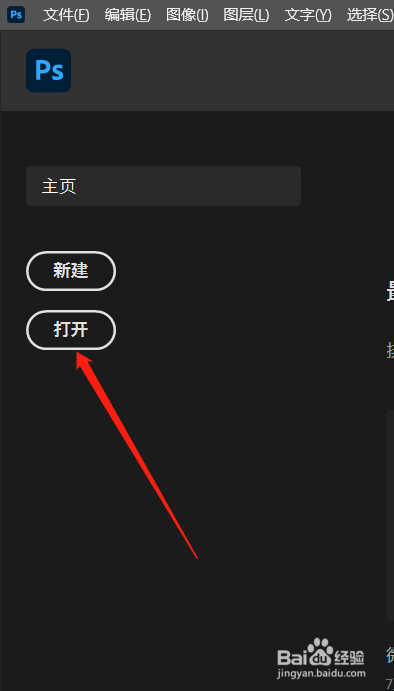 打开ps软件,点击打开按钮,打开需要修改的图片。
