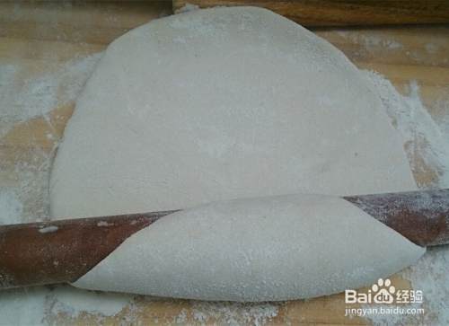 中筋粉、油一起搅拌均匀,有粘手即可。水油皮500克、油心250克、用擀面杖擀开、包入油心擀薄对折四层、松弛擀长造型。