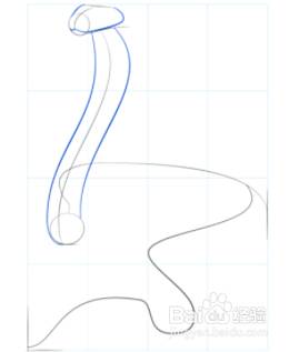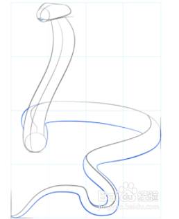 为蛇头画一个椭圆形。画一条线,作为头部的中心。通过圆滑的线条画出颈部和背部的形状。