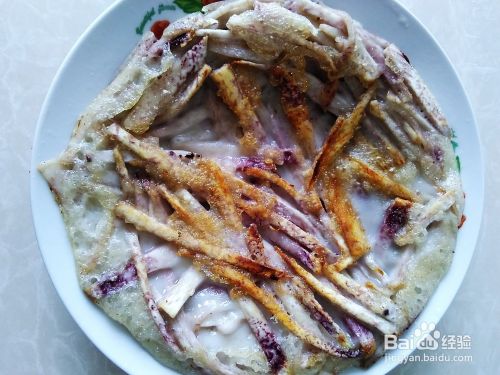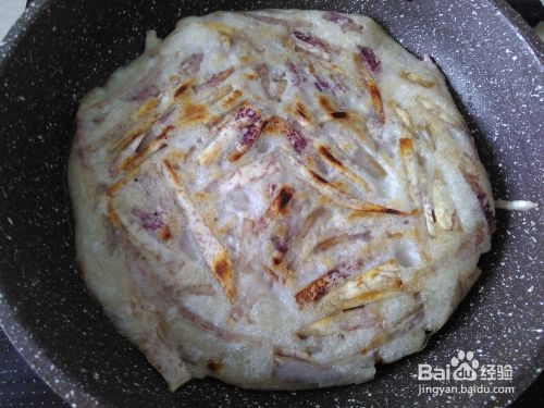 再开火下油,把饼放回锅里,小火煎另一面,再煎3分钟左右。